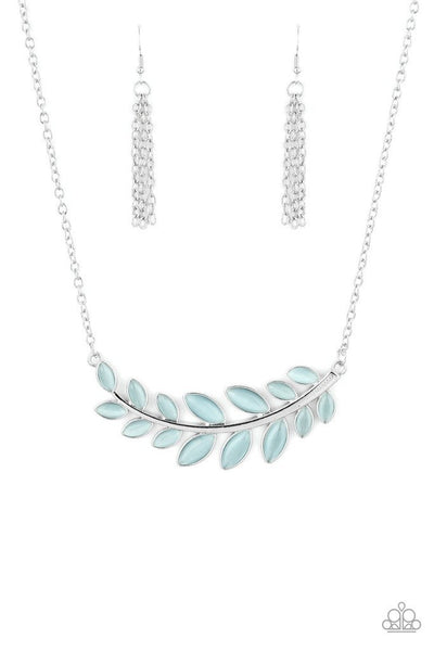 Dotted with tranquil blue cat's eye stones, a leafy silver branch delicately curves below the collar for a whimsical look. Features an adjustable clasp closure.