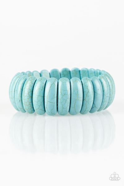 Refreshing turquoise stone beads are threaded along stretchy bands, creating an earthy look around the wrist.