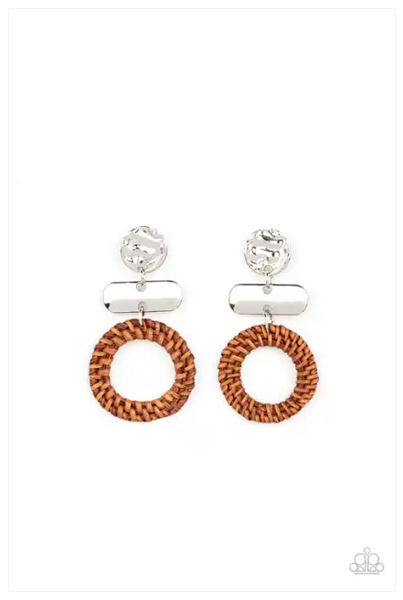Paparazzi Woven Whimsicality - Brown Post Earrings