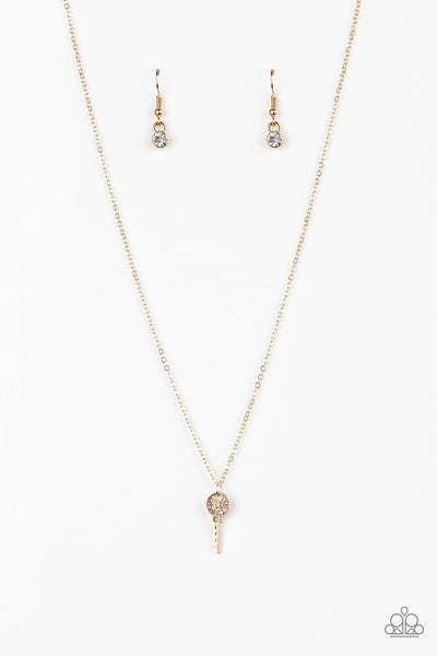 Encrusted in glassy white rhinestones, a dainty gold key pendant swings below the collar for a whimsical look. Features an adjustable clasp closure.
