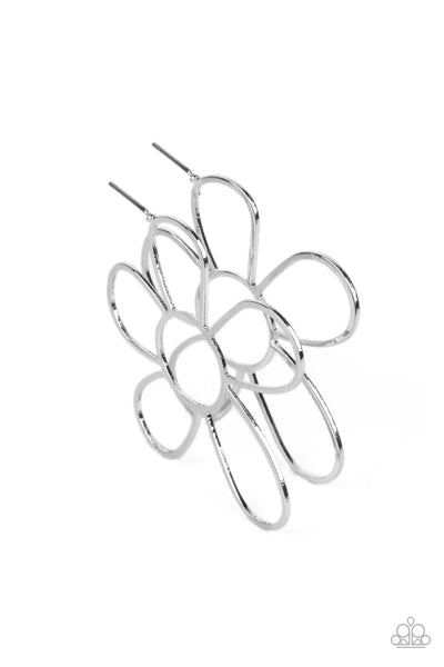 Shimmery, high-sheen silver is artfully shaped into an oversized flower. The open framework creates an air of whimsicality, as the exaggerated size of the design leaves a lasting impression. Earring attaches to a standard post fitting.