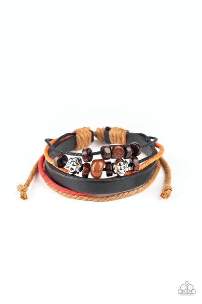Featuring a collection of wooden, silver, and rock beads, mismatched leather and twine strands layer across the wrist for a colorful look. Features an adjustable sliding knot closure.