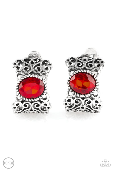 Paparazzi Glamorously Grand Duchess - Red Clip-On Earrings