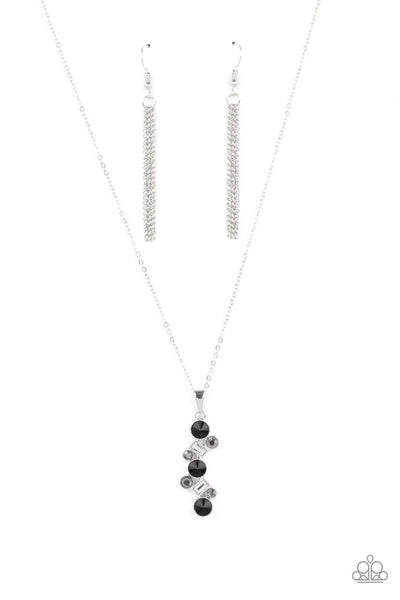 Featuring classic round and regal emerald style cuts, a glittery collection of black, hematite, and white rhinestones delicately coalesce into a glamorous pendant below the collar. Features an adjustable clasp closure.