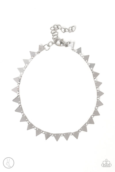 Dainty silver triangular frames link around the ankle for an edgy, minimalist inspired look. Features an adjustable clasp closure.